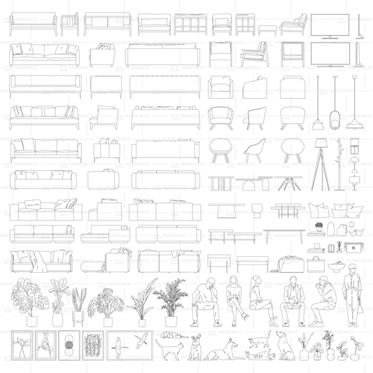 Megapack de mobiliario en ALZADO | CAD & Vector